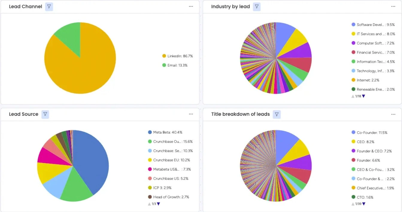 A marketing agency working with tech founders used our Direct Outreach system to expand across Europe. Using Crunchbase data, we identified recently funded startups and launched a mixed LinkedIn and email campaign using co-founder profiles.