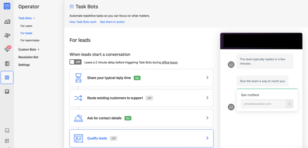 At Growth Division we love Intercom as both a lead capture tool and as a customer engagement tool in applications and as a customer support tool. In this stack, it’s used as a lead capture tool on the website. We set up a Task Bot to automatically engage with leads on the website, then to qualify them and capture their information, which gets passed into Copper CRM for the Sales team to manage.