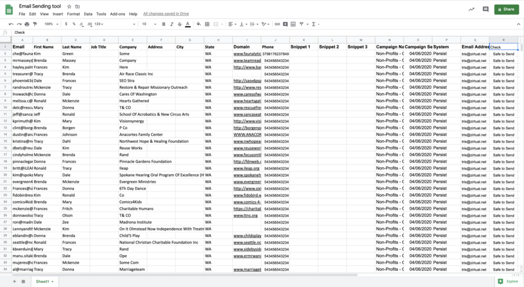In this stack, Google Sheets is used for lead data storage. This is where the GetProspect data feeds into, it’s where thee Debounce email validation happens, it’s where the VA works from to enrich and manipulate the lead data.