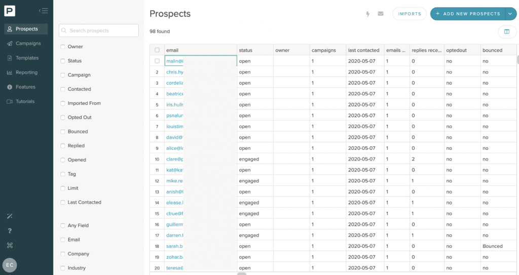 The data that is retrieved from GetProspect is sometimes a logical guess for the email data it pulls in (based on the email structure it finds). So it’s important to verify the email addresses to see if they are real. High bounce rates spoil domain reputation and result in poor deliverability, meaning suboptimal campaigns, and ultimately less leads.